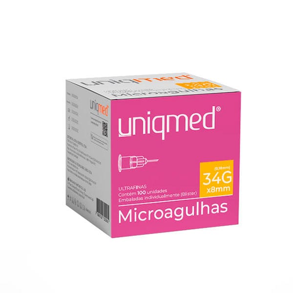 Microagulhas Uniqmed 34G x 8mm - Caixa com 100 unidades